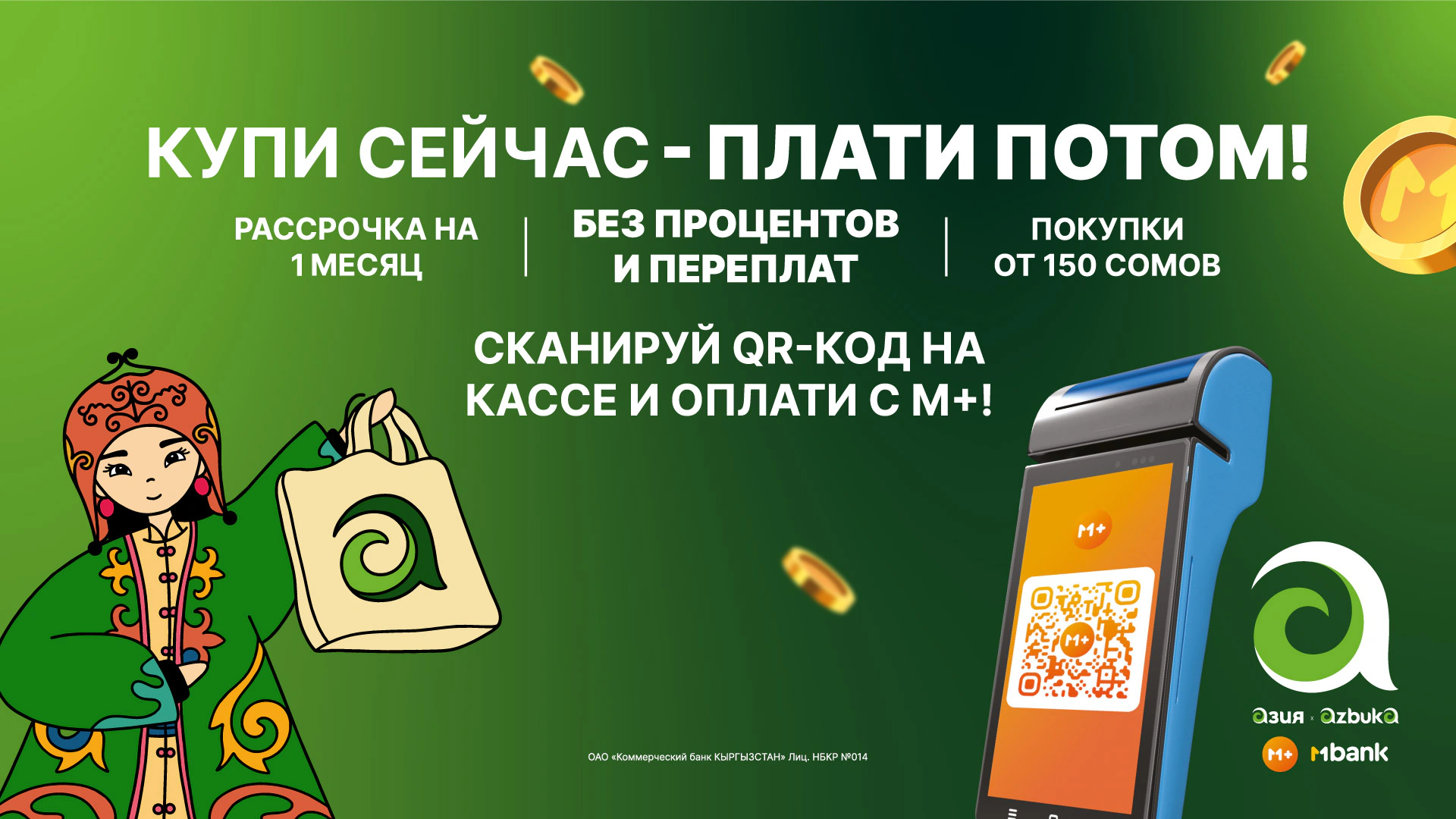 - В любом магазине «Азия» или «Азбука» скажите кассиру, что хотите оплатить покупку QR кодом